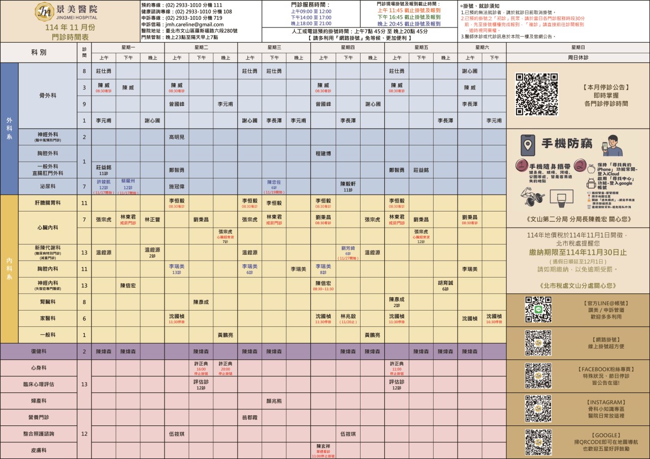 114年1月1日起 本院掛號費用調整,感謝您的支持